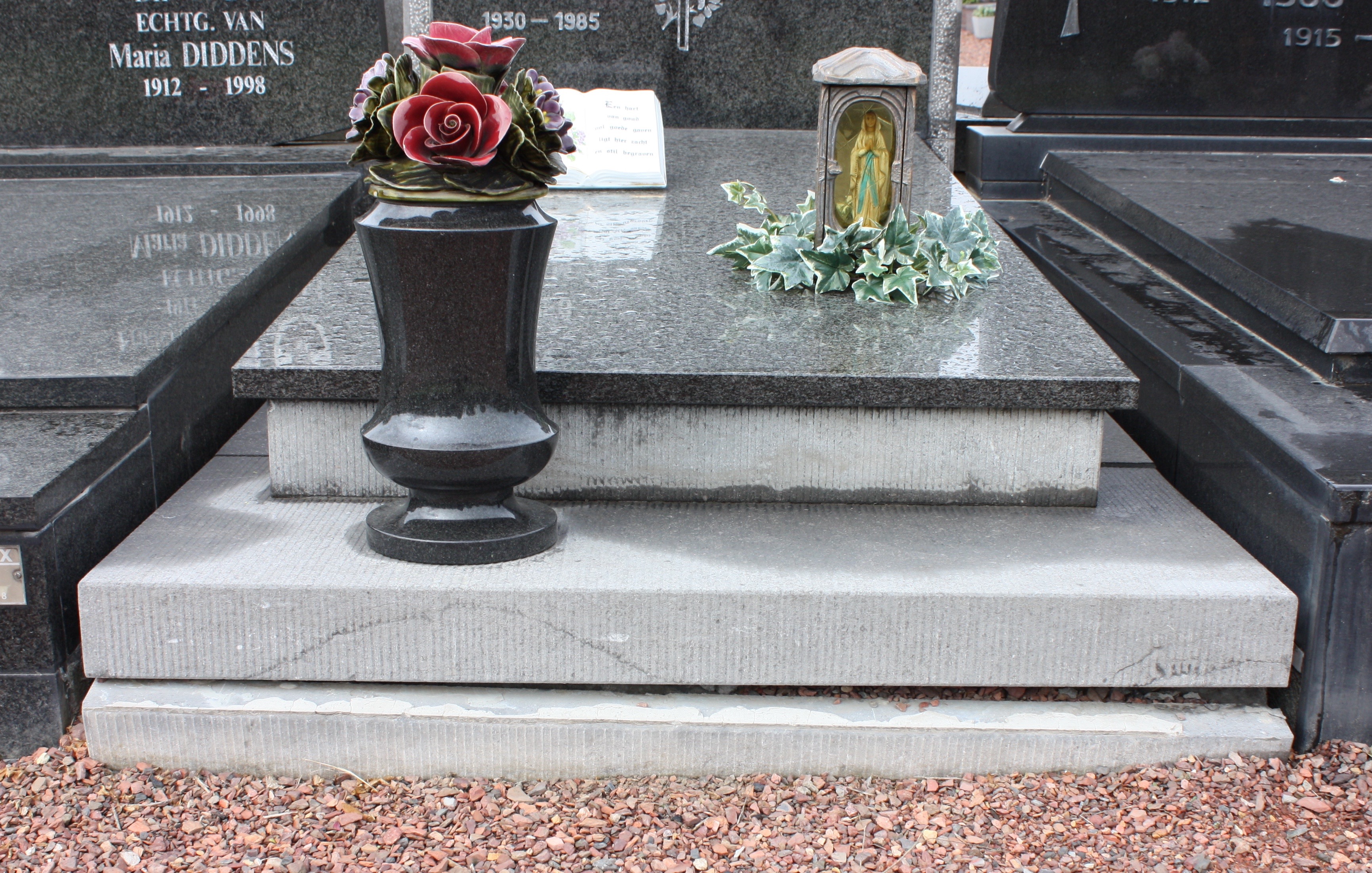 Herstelling losgekomen plint oude grafzerk